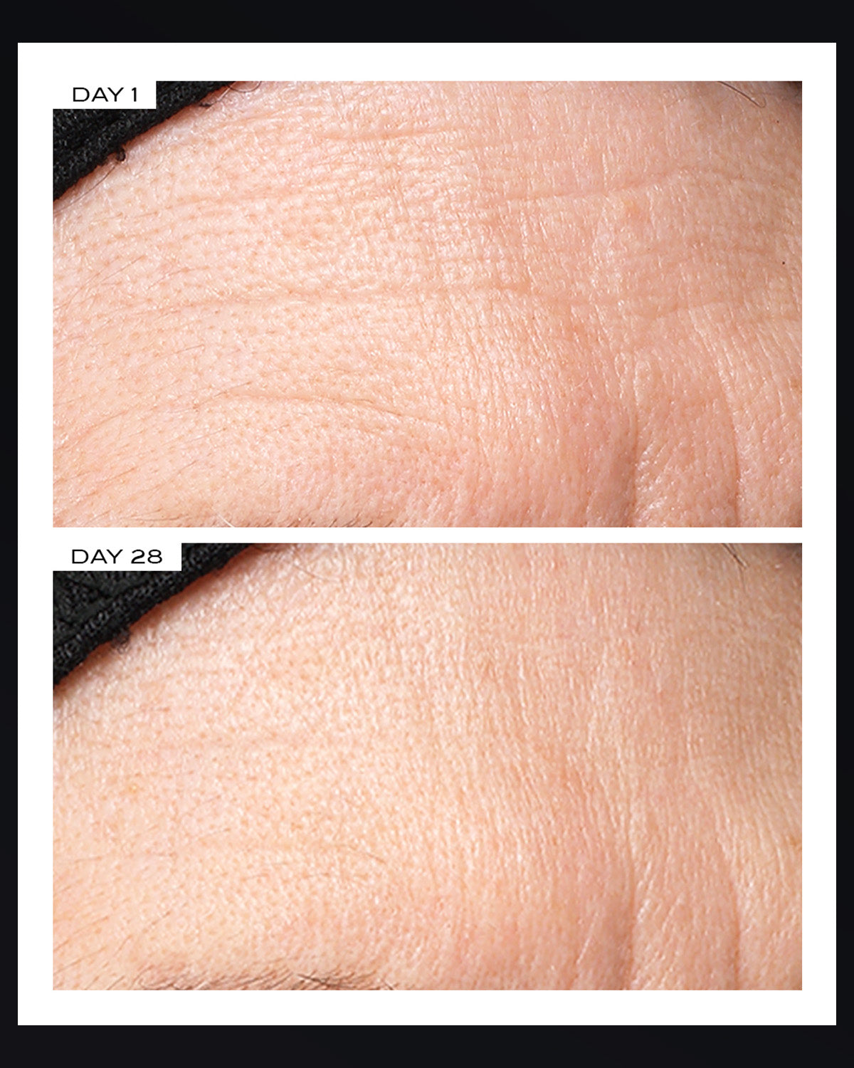 Amazing results in just 4 weeks. Skin looks younger, pretty much after the first use. Instantly noticeable improvement in my skin. Wrinkles & fine lines reduced, overall skin looks and feels younger and more plumped. More radiant and less dull. Smoother skin, soft & nourished and pores refined and less visible.