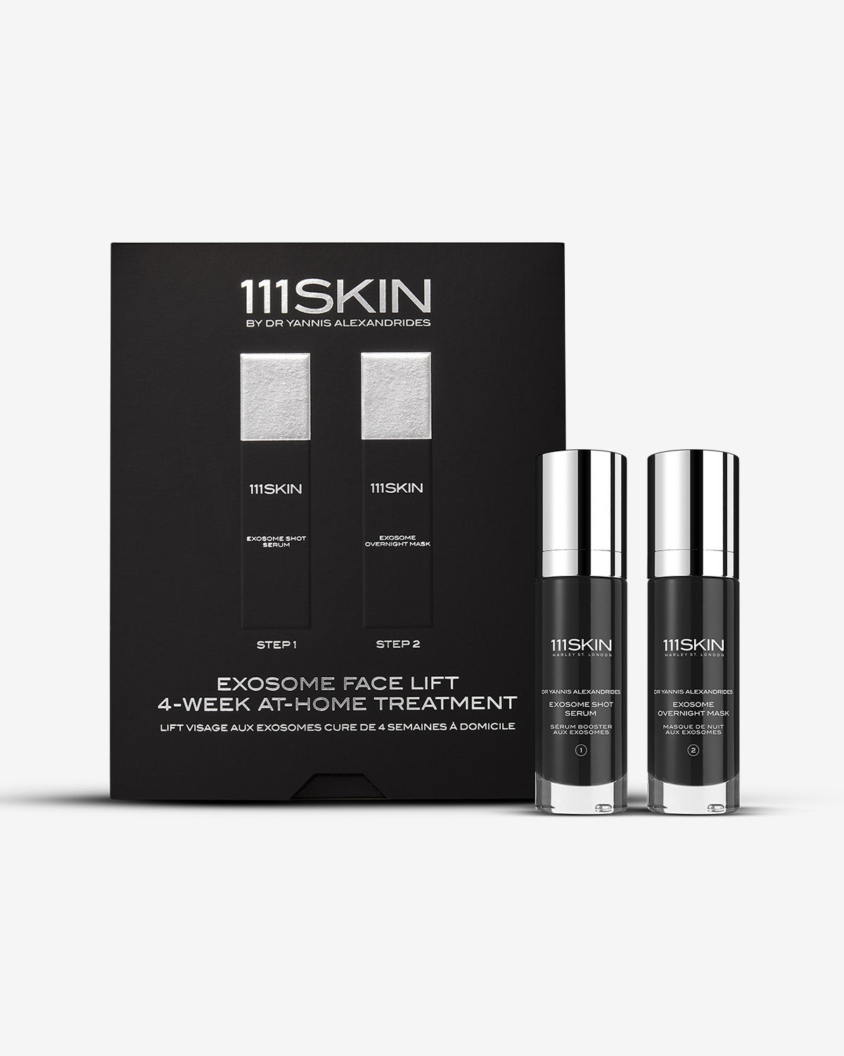 Visibly renew and rejuvenate the skin in 4 weeks with 111SKIN’s Exosome Face Lift. The two step treatment is comprised of the Exosome Shot Serum and the Exosome Overnight Mask. This fast-acting duo targets advanced signs of ageing by lifting and tightening the skin, addressing fine lines and wrinkles.