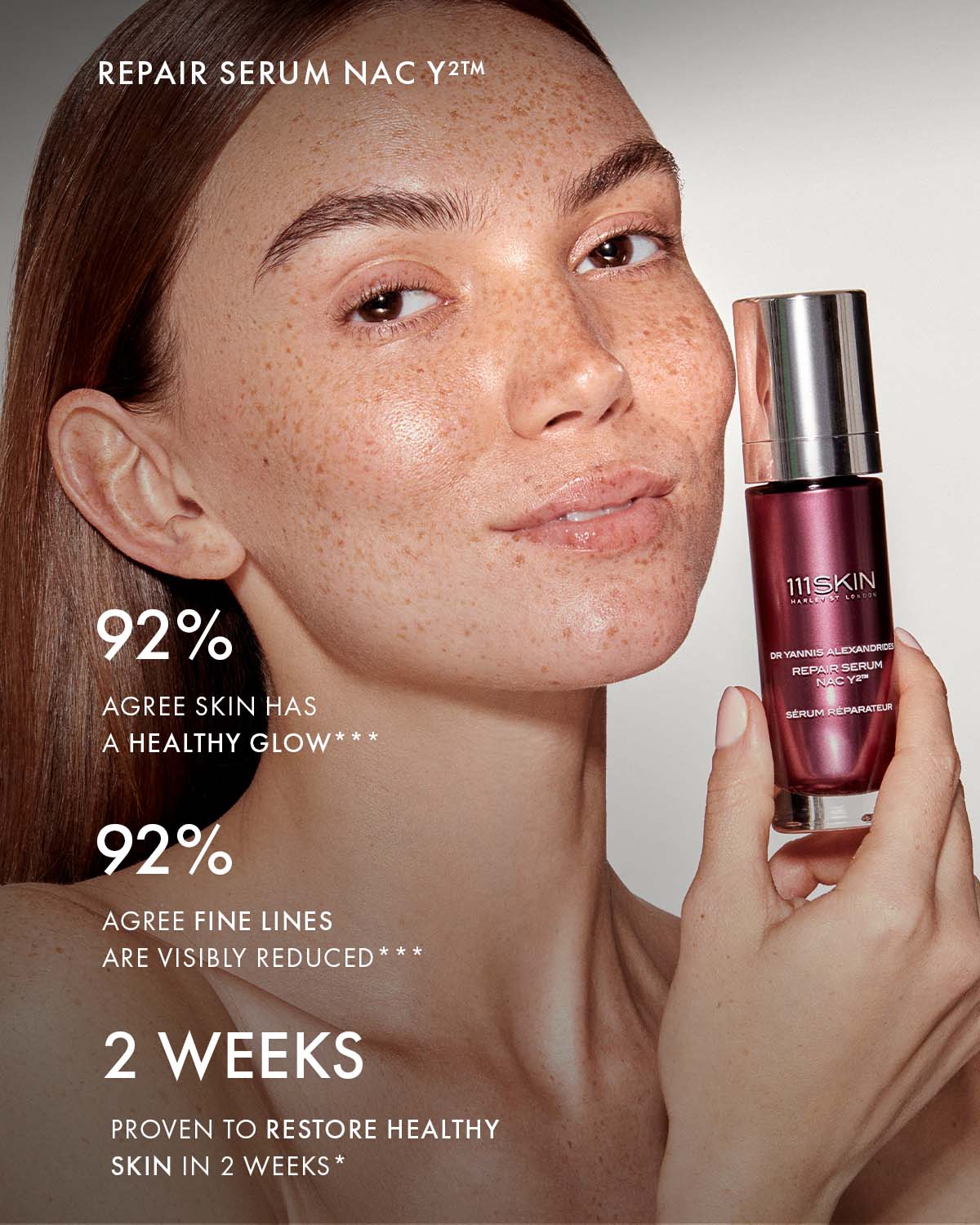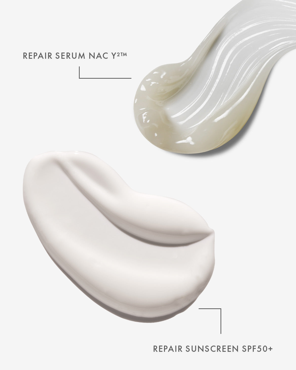 The Repair Sunscreen SPF 50+ provides broad-spectrum UV protection with a lightweight formula that keeps your skin comfortable all day. While the Repair Serum NAC Y²™ can be used before or after sun exposure to redness and build your skin’s resilience. Together, these products create a comprehensive skincare routine to keep your complexion youthful and protected.