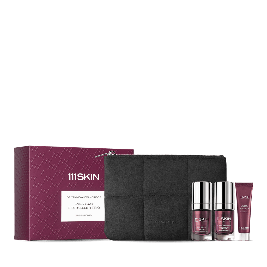 Discover your 111SKIN reparative routine with this trio of our hero formulas. Repair Serum NAC Y2™ is clinically proven to restore healthy skin, reinforce the skin barrier and instantly hydrate. The Eye Lift Gel NAC Y2™ known as an ‘eye lift in a bottle’ targets the delicate eye area to hydrate lift and de-puff for a younger-looking awakened appearance. Finally, the Repair Day Cream NAC Y2™ helps to shield skin and strengthen the skin barrier, all while melting effortlessly into the skin. This powerhouse trio comes in a beautiful velvet bag to take with you everywhere.