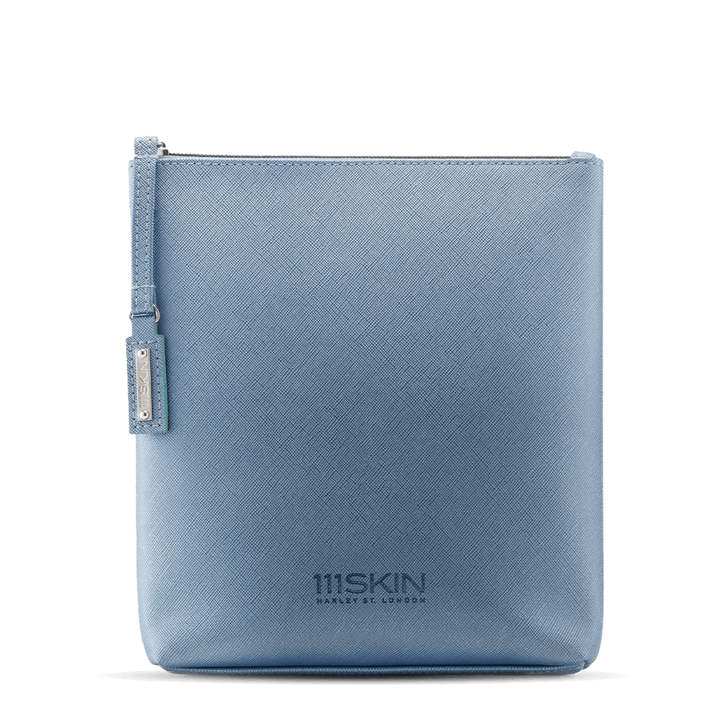 Our blue cosmetic pouch is your ultimate travel companion for carrying all your 111SKIN Masks when on the move. Crafted from luxurious faux leather and featuring a branded metal zipper, it combines style and practicality.