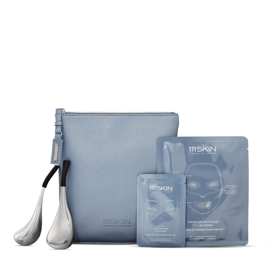 Discover 111SKIN's Cryo Sculpting Kit, your go-to solution for skin rejuvenation. Unleashing the benefits of cold therapy, the cool metal lifts the face through muscular constriction for a sculpted look. Pairing perfectly with our ultra-moisture locking hydrogel cryo masks that wrap closely around the contour of the eyes and face, infusing skin with active ingredients to reduce inflammation. The masks help the tool to glide over the face and revitalize the skin.  Previously exclusive to our global expert facials, this kit is designed to upgrade your skin ritual.